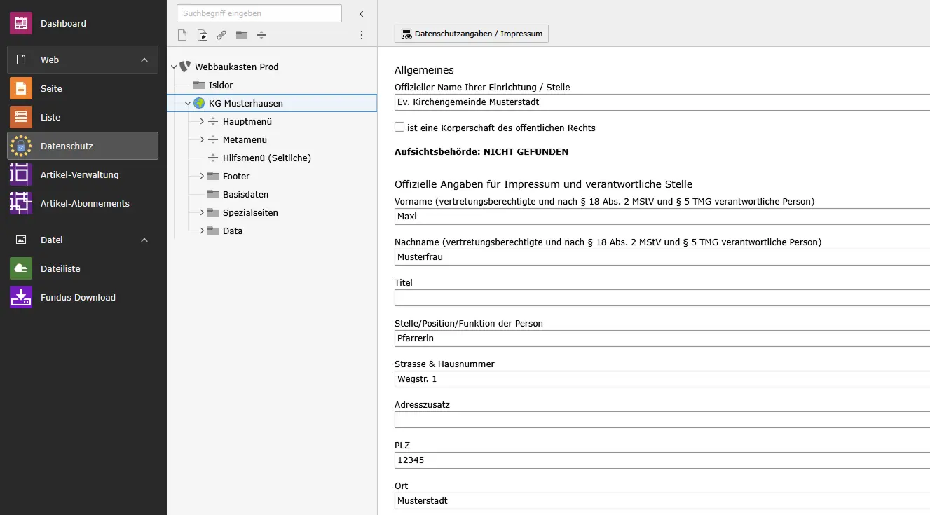 Bitte prüfen Sie unbedingt, ob alle Angaben im Impressum korrekt sind, bevor die Webseite frei geschaltet wird, da diese rechtsverbindlich sind.